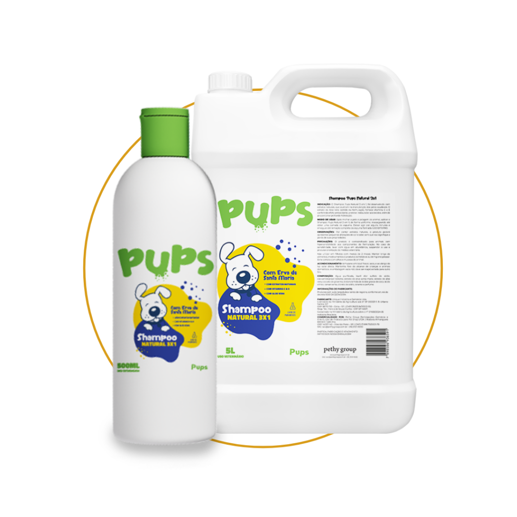 Shampoo Pups Natural 3 em 1: Com extrato de erva Santa Maria, age protegendo seu pet de forma natural e eficaz. O extrato de aloe vera, presente na fórmula, garante hidratação e vitamina C e E para a pele do animal.